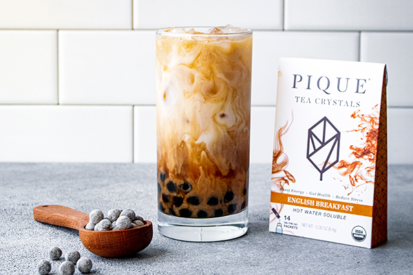 The “bubbles” are balls of tapioca, more often referred to as black tapioca pearls. Tapioca pearls are made from starch derived from the cassava root and are pure carbohydrate. They don’t contribute much flavor, but their starchiness gives them a chewy texture that punctuates the smooth and creamy tea. Topped with plenty of ice and milk tea, the combo makes for refreshing, fun, and indulgent summer tea drinks.