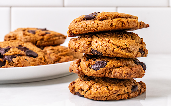 No flour? No problem! These peanut butter chocolate chip cookies bake up crisp and chewy without any added flour or oil!