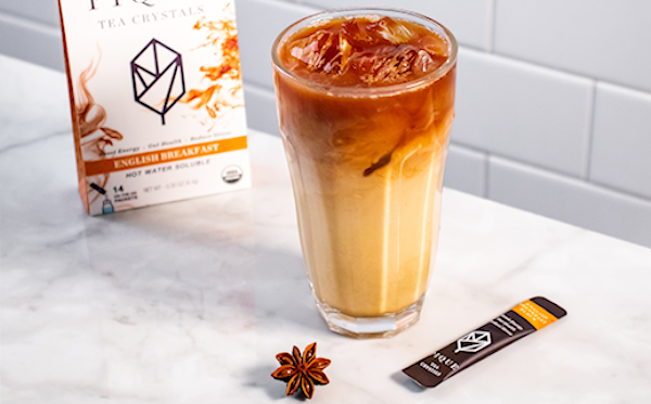 Once the spices have infused their flavor, they’re strained and coconut sugar is stirred in along with the black tea crystals creating a sweet and fragrant tea base.