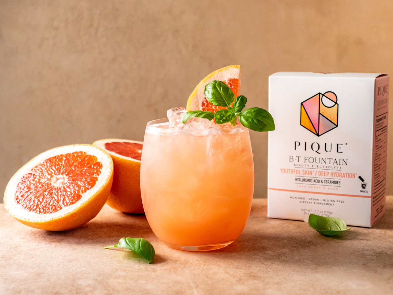- Dissolve B•T Fountain Electrolytes in filtered water. Add grapefruit juice and stir well. Pour over ice in a glass and top with sparkling water. Garnish with fresh basil and a slice of grapefruit.