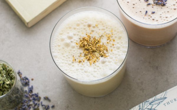 - Combine ½ tsp ghee butter with ¼ cup macadamia nut milk and froth by whisking, with a frother or blending.