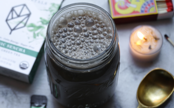 - Add the almond milk and sachet Pique Organic Sencha Green Tea into a saucepan and heat over medium-high heat until steaming. If you are using dates to sweeten, add them to the saucepan while you are heating up the mixture.