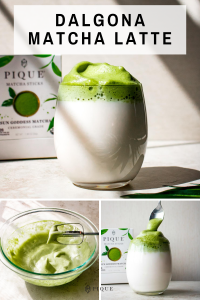A dalgona is a whipped drink typically made from instant coffee granules, granulated sugar, and water that is served over milk. The ingredients are whipped, incorporating air until a fluffy yet sturdy whipped confection is created. For non-coffee drinkers or anyone looking for a lower caffeine alternative to coffee, you can also partake in this velvety-textured beverage by using matcha tea powder.