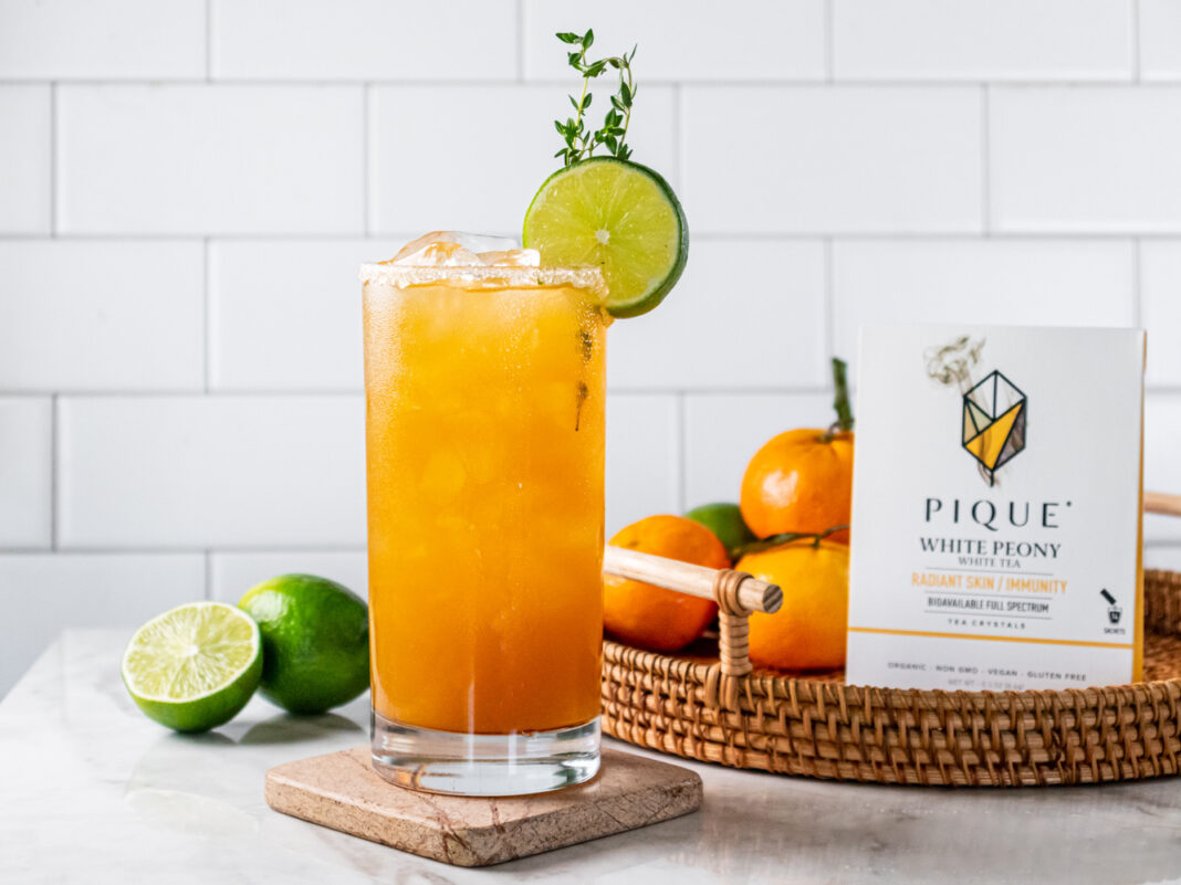 This citrusy mocktail is perfect for summer! It has all the flavor of a delicious margarita without any alcohol added. Instead, white peony tea is used for a sober-curious drink that is bursting with flavor and antioxidants!