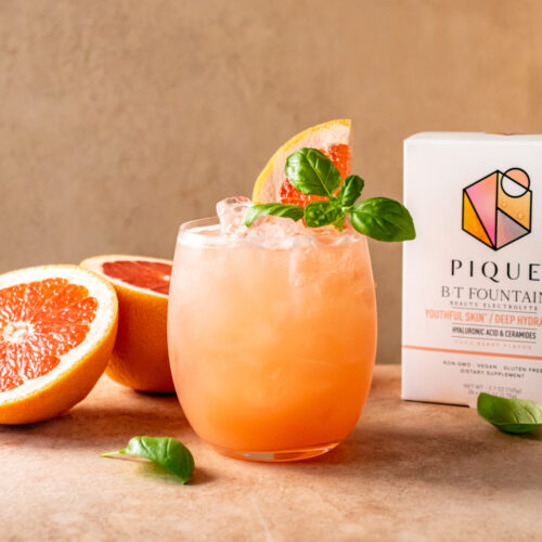 Dissolve B•T Fountain Electrolytes in filtered water. Add grapefruit juice and stir well. Pour over ice in a glass and top with sparkling water. Garnish with fresh basil and a slice of grapefruit.